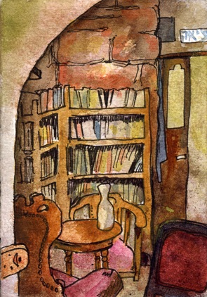 Recently I came across a new blog, Drawing Tel Aviv, and fell in love. The artist behind the fabulous watercolors of everyday life in Tel Aviv is Carol Feldman, an olah from Oklahoma, now living in Tel Aviv. What struck me is how she captures Israeli life so perfectly – just look at the guy reading the Ma’ariv Hebrew daily newspaper, with Crocs, sitting next to a sprawled out stray cat. Carol also paints the ubiquitous corner Tel Aviv cafe. I also loved her painting of humus and Israeli money. Also see what israelplug had to say about this great new talent.
