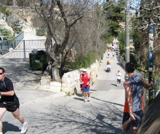 Thanks to the new Gmaps Pedometer, creating my running routes has been easy— but there’s nothing easy about the actual runs. Every route has hills, it is unavoidable. Not only that, Jerusalem doesn’t have a beach, a lake or a boardwalk (I know there is the Haas Promenade in Talpiot, but really not the same as a boardwalk), that could make the run more visually exciting. Sure there is the Jerusalem Forest, but that is just more of the same, with crazy hills and inclines that my legs, butt and thighs will just not accept. And true, we do have the Old City which is a cool place to run through, if you like thousands of tourists getting in your way, cars trying to squeeze through the narrow streets, and broken roads that make for embarrassing and painful (being embarrassed hurts more than bruises) falls.