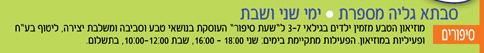 The Nature Museum invites children ages 3-7 for story hour (in Hebrew) with stories related to nature and the environment and integrates a workshop, petting animals, and activities in the museum.