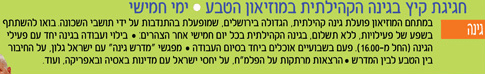 Outside the nature museum there is a community garden, run by volunteers. Work in the garden starts from 4:00pm on Thursdays. Once every two weeks, the volunteers eat together. At 6:0pm, Yisrael Golan tells a “garden midrash”.