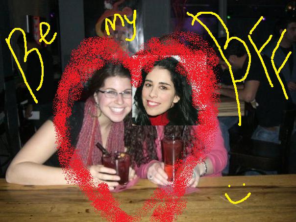 Sarah Silverman this is my ‘Be My BFF’ campaign and I will do everything that I can until you and I are wearing friendship bracelets, posing in front of the Western Wall with our shoulders covered (thanks to the old lady-shmata-police at the Kotel who hand out dirty scarves to make sure G-d doesn’t get a peep show in the holiest place in the world) and leftover hummus and pita in our teeth.